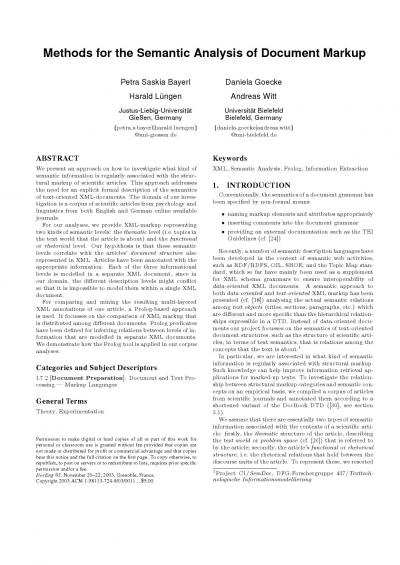 Methods for the semantic analysis of document markup