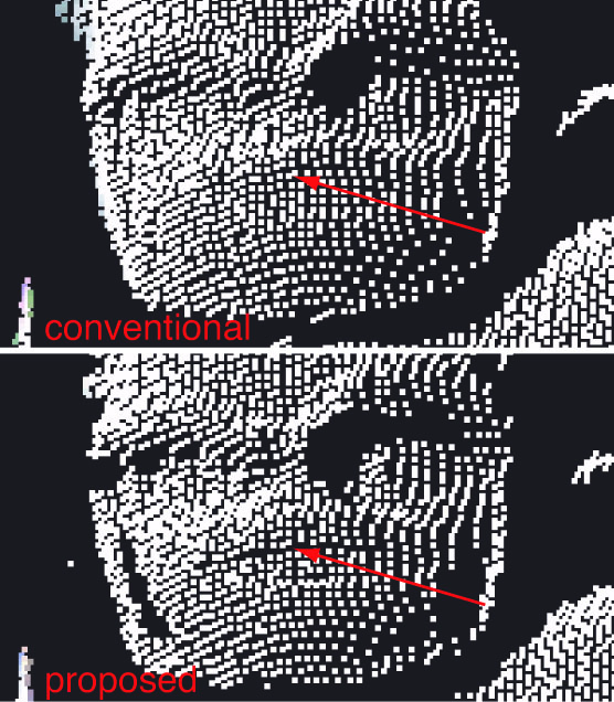 between the projector and the camera. Prior to the measurement, epipolar constraint