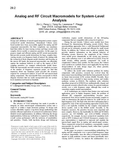 Analog and RF circuit macromodels for system-level analysis