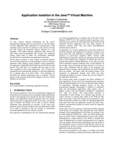 Application isolation in the JavaTM Virtual Machine