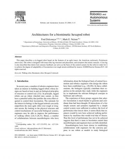 Architectures for a biomimetic hexapod robot