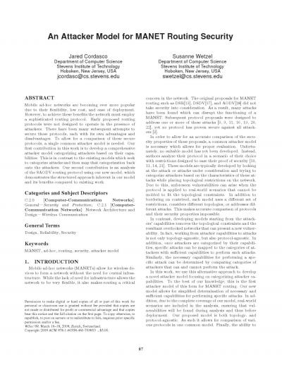 An attacker model for MANET routing security