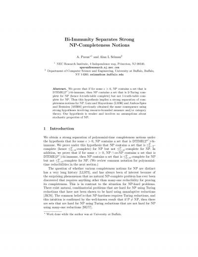 Bi-Immunity Separates Strong NP-Completeness Notions
