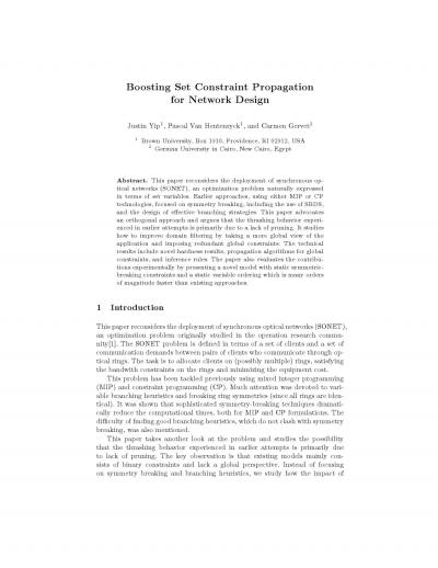 Boosting Set Constraint Propagation for Network Design
