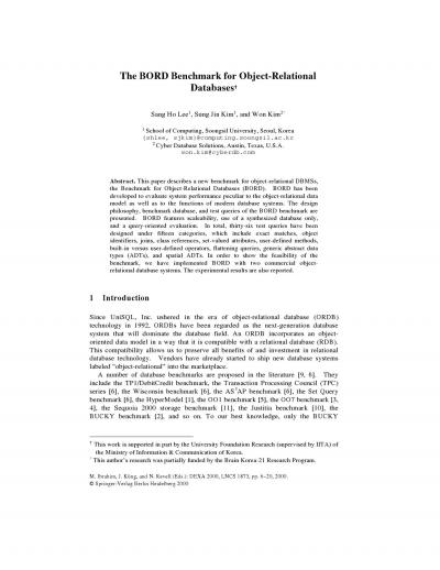 The BORD Benchmark for Object-Relational Databases