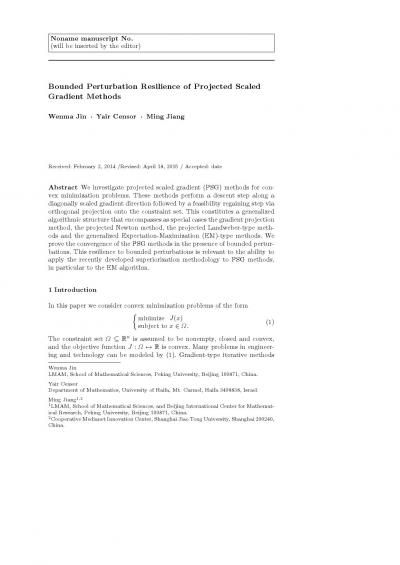 Bounded perturbation resilience of projected scaled gradient methods