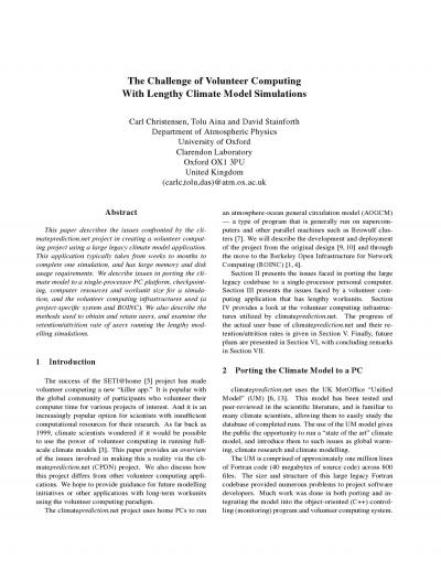 The Challenge of Volunteer Computing with Lengthy Climate Model Simulations