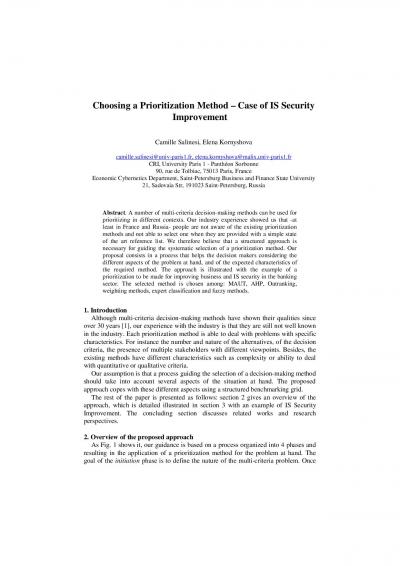Choosing a Prioritization Method-Case of IS Security Improvement