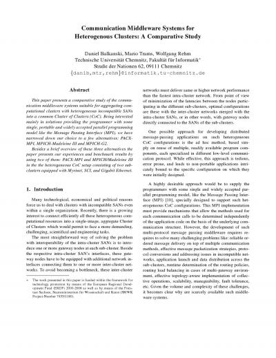 Communication Middleware Systems for Heterogenous Clusters: A Comparative Study