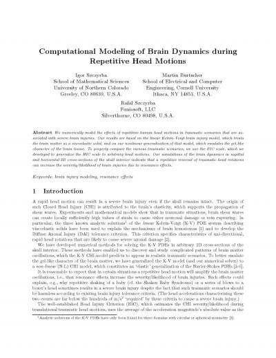 Computational Modeling of Brain Dynamics during Repetitive Head Motions