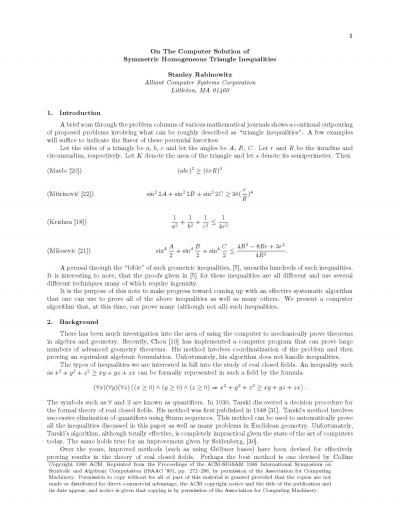 On the Computer Solution of Symmetric Homogeneous Triangle Inequalities