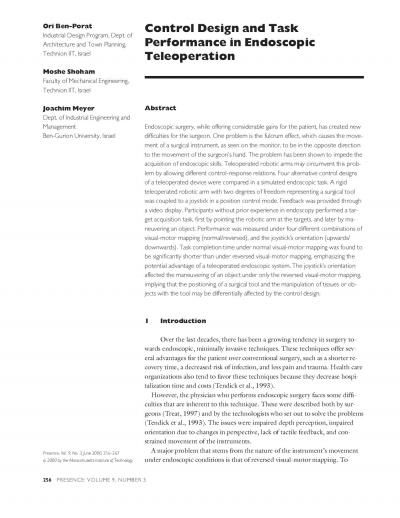 Control Design and Task Performance in Endoscopic Tele-Operation