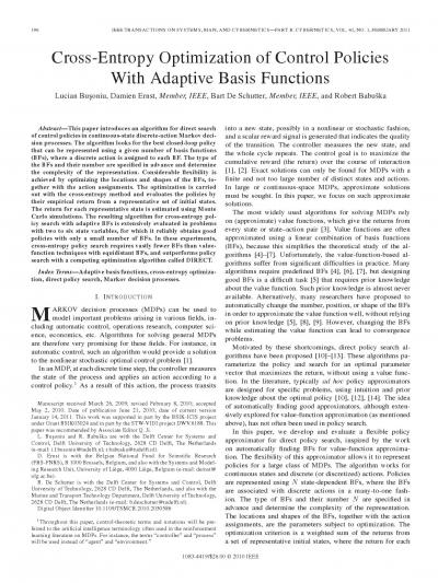 Cross-Entropy Optimization of Control Policies With Adaptive Basis Functions