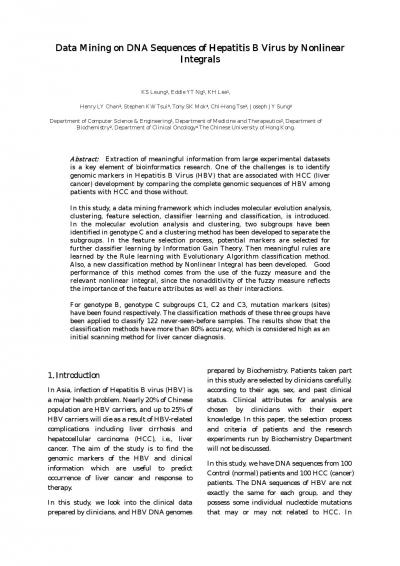 Data Mining on DNA Sequences of Hepatitis B Virus