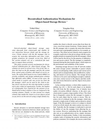 Decentralized Authentication Mechanisms for Object-based Storage Devices