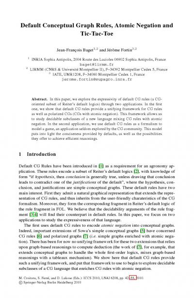 Default Conceptual Graph Rules, Atomic Negation and Tic-Tac-Toe