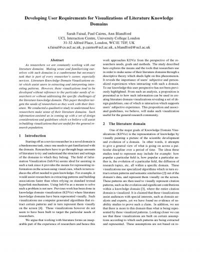 Developing User Requirements for Visualizations of Literature Knowledge Domains
