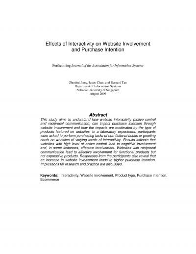 Effects of Interactivity on Website Involvement and Purchase Intention