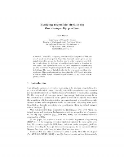 Evolving Reversible Circuits for the Even-Parity Problem