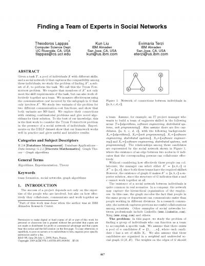 Finding a team of experts in social networks