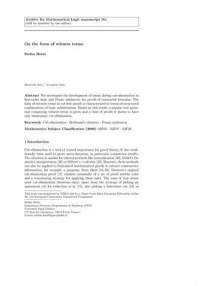On the form of witness terms