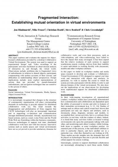 Fragmented Interaction: Establishing Mutual Orientation in Virtual Environments