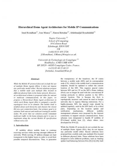 Hierarchical Home Agent Architecture for Mobile IP Communications
