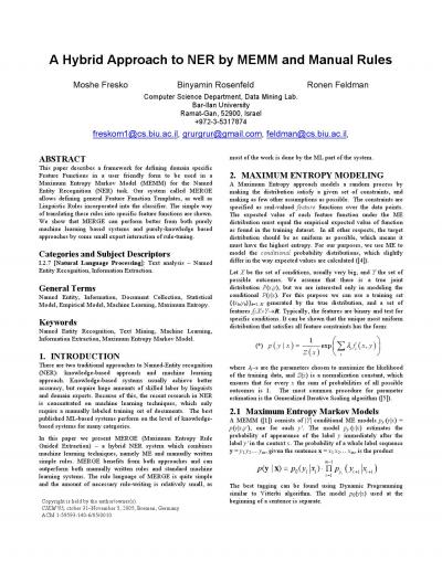 A hybrid approach to NER by MEMM and manual rules