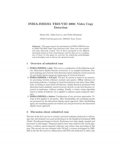 INRIA-IMEDIA TRECVID 2008: Video Copy Detection