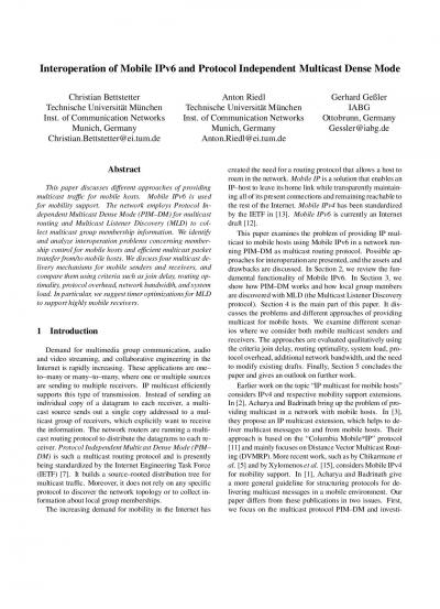 Interoperation of Mobile IPv6 and Protocol Independent Multicast Dense Mode