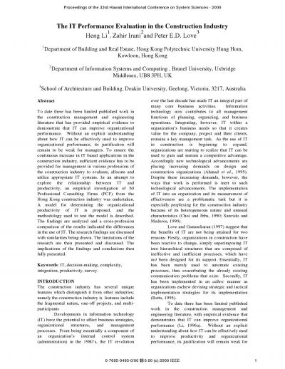 The IT Performance Evaluation in the Construction Industry
