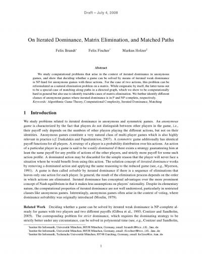 On Iterated Dominance, Matrix Elimination, and Matched Paths