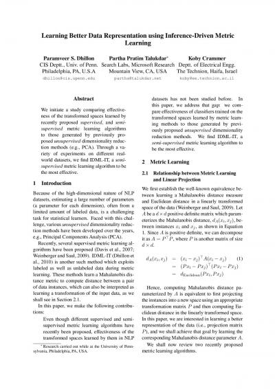 Learning Better Data Representation Using Inference-Driven Metric Learning
