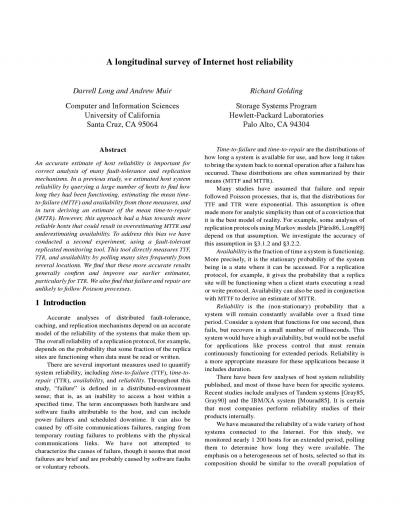 A Longitudinal Survey of Internet Host Reliability