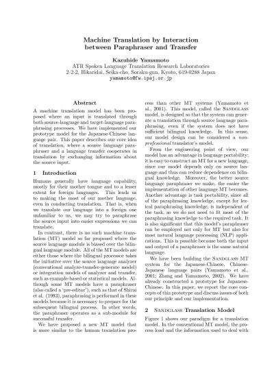 Machine Translation by Interaction between Paraphraser and Transfer