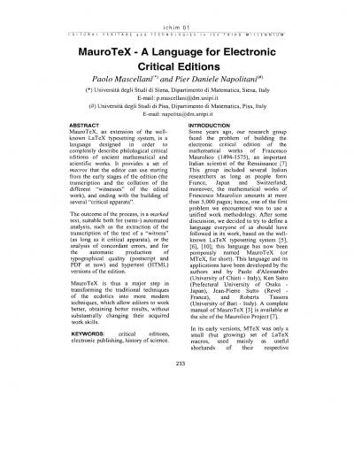 MauroTeX - A Language for Electronic Critical Editions
