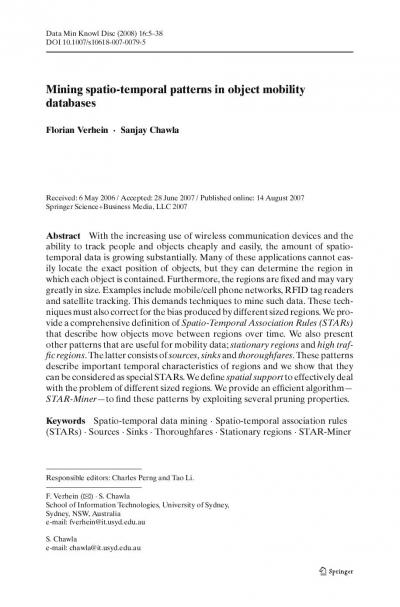Mining spatio-temporal patterns in object mobility databases
