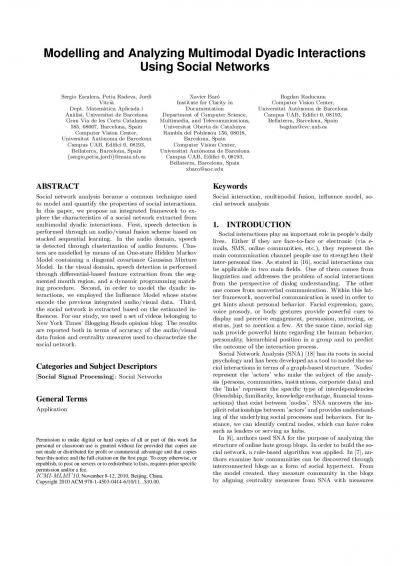Modelling and analyzing multimodal dyadic interactions using social networks