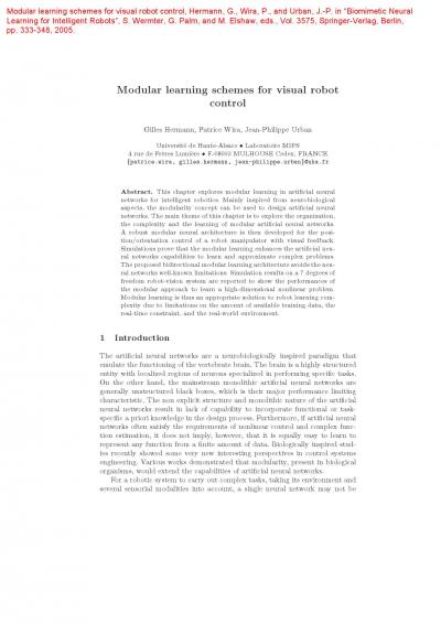 Modular Learning Schemes for Visual Robot Control