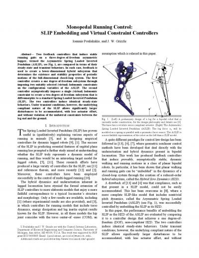 Monopedal running control: SLIP embedding and virtual constraint controllers