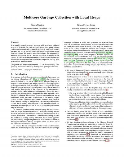 Multicore garbage collection with local heaps
