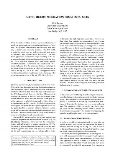 Music Recommendation from Song Sets