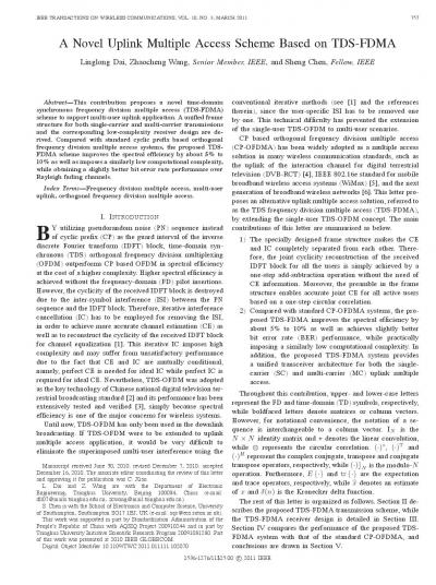 A Novel Uplink Multiple Access Scheme Based on TDS-FDMA