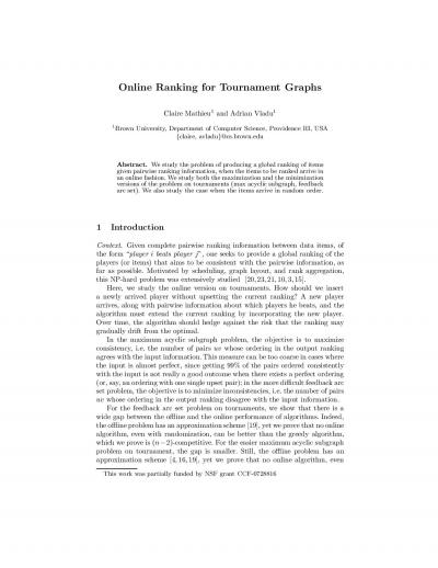 Online Ranking for Tournament Graphs