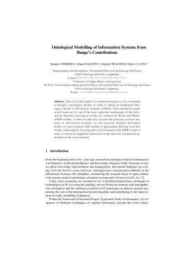 Ontological Modelling of Information Systems from Bunge's Contributions