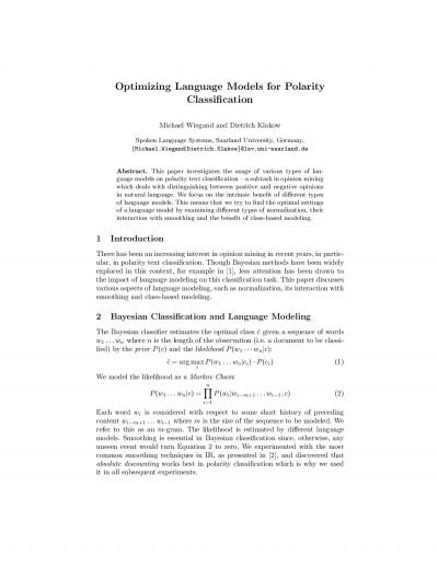 Optimizing Language Models for Polarity Classification