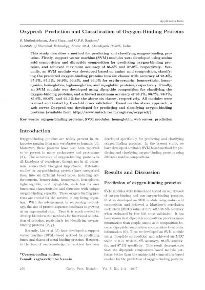 Oxypred: Prediction and Classification of Oxygen-Binding Proteins