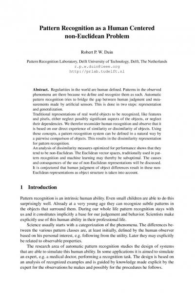 Pattern Recognition as a Human Centered non-Euclidean Problem