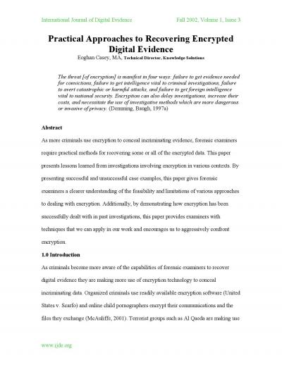 Practical Approaches to Recovering Encrypted Digital Evidence