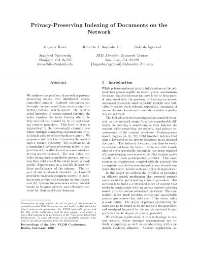 Privacy-preserving indexing of documents on the network